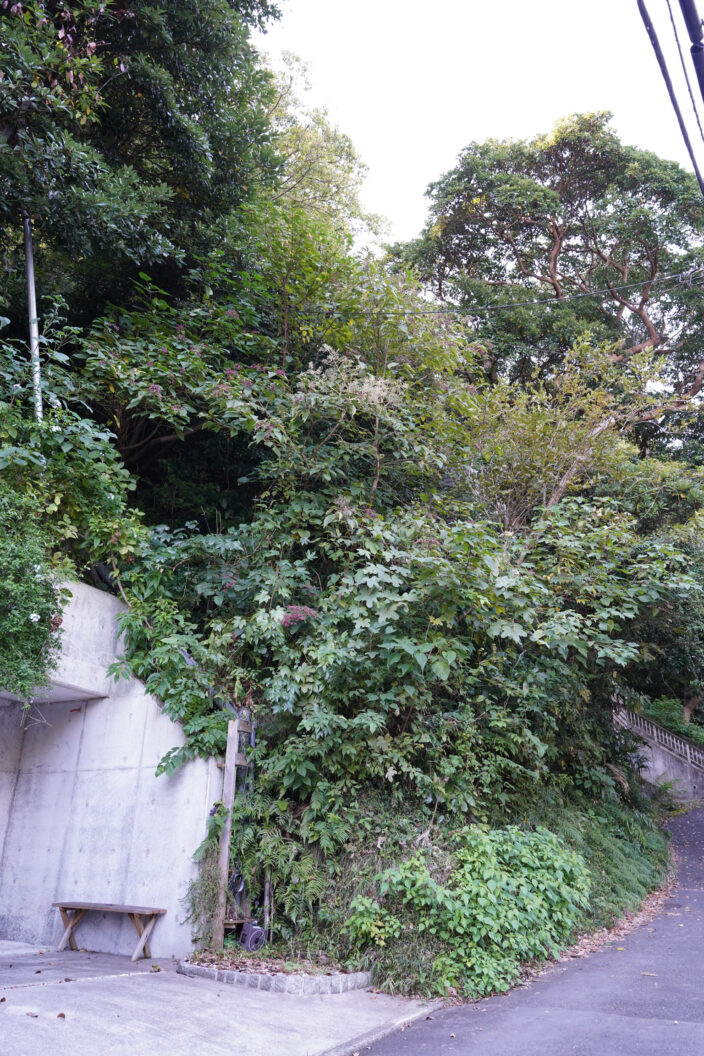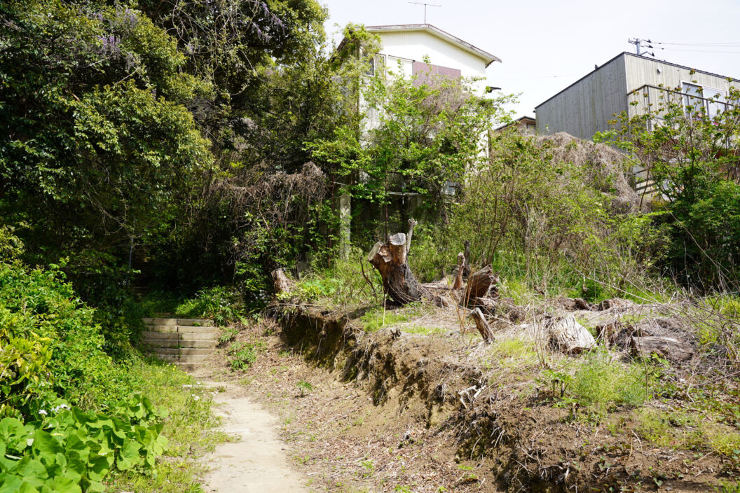 この写真は土地全体が斜面地で売り出されていた例です。駅から近く破格の価格になっている場合は、大抵がこのように難易度の高い物件であることが多いです。